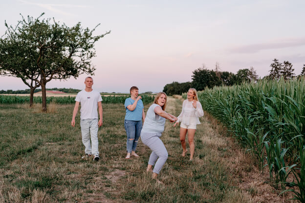 Ob draußen in der Natur oder bei euch zu Hause – gemeinsam schaffen wir zeitlose Bilder, die eure schönsten Zeiten festhalten.