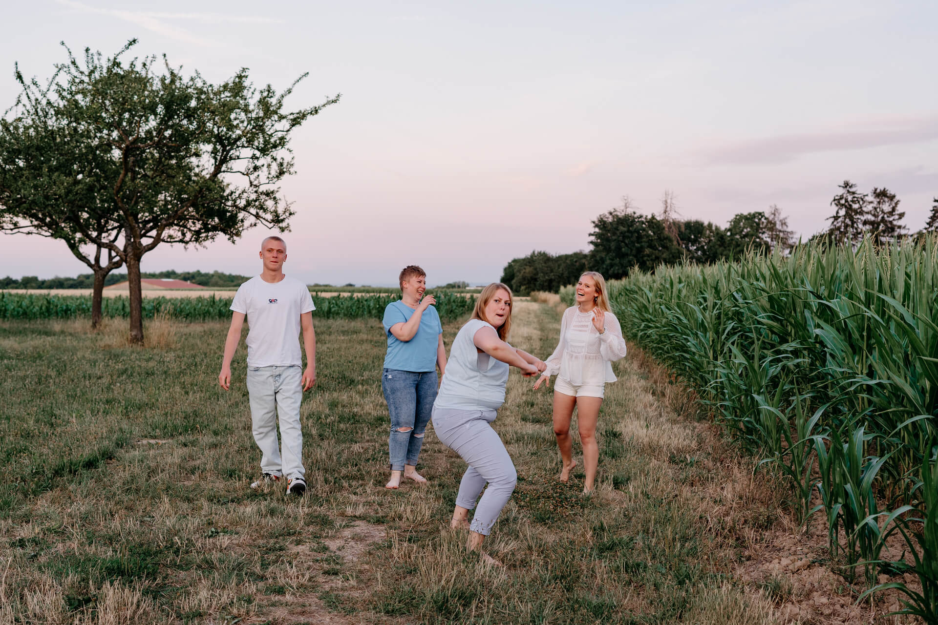 Wir haben das Thema Farben oben bereits angesprochen. Wichtig ist auch, dass ihr euch farblich abstimmt. Das bedeutet nicht, dass alle etwas blaues anziehen müssen. Die gewählten Farben sollten einfach miteinander harmonieren und sich nicht „beißen“. Gerade bei Shootings mit größeren Gruppen von z. B. 4-6 Personen darf es ruhig ein paar Farbtupfer geben